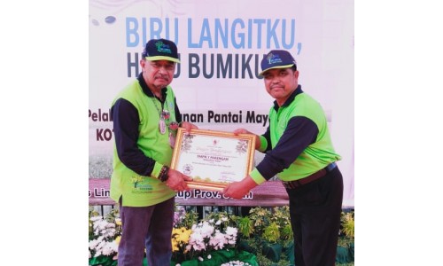 Bapak Priyoto menerima piagam ADIWIYATA PROVINSI JAWA TIMUR yang di terimakan oleh Pejabat Dinas Lingkungan Hidup Provinsi Jawa Timur